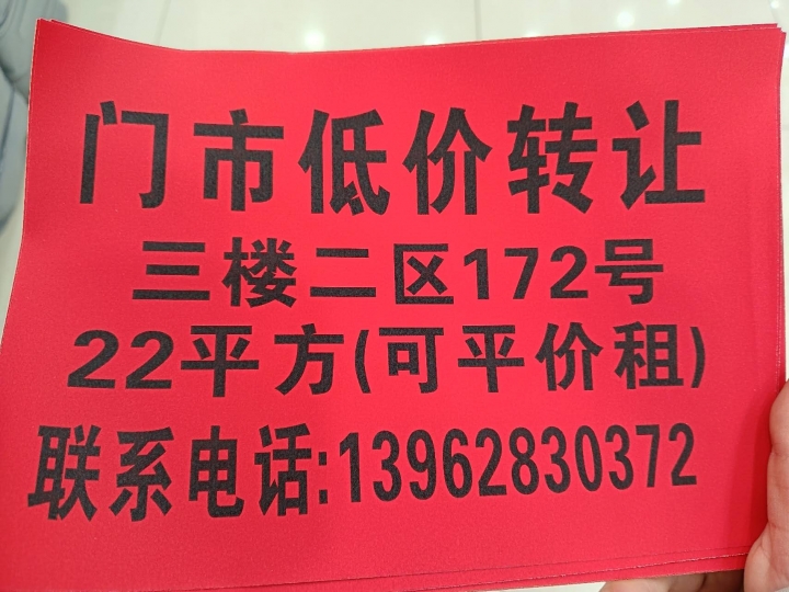 三期门市低价转让,出租,三楼二区172号,位置好,面积22平方。...